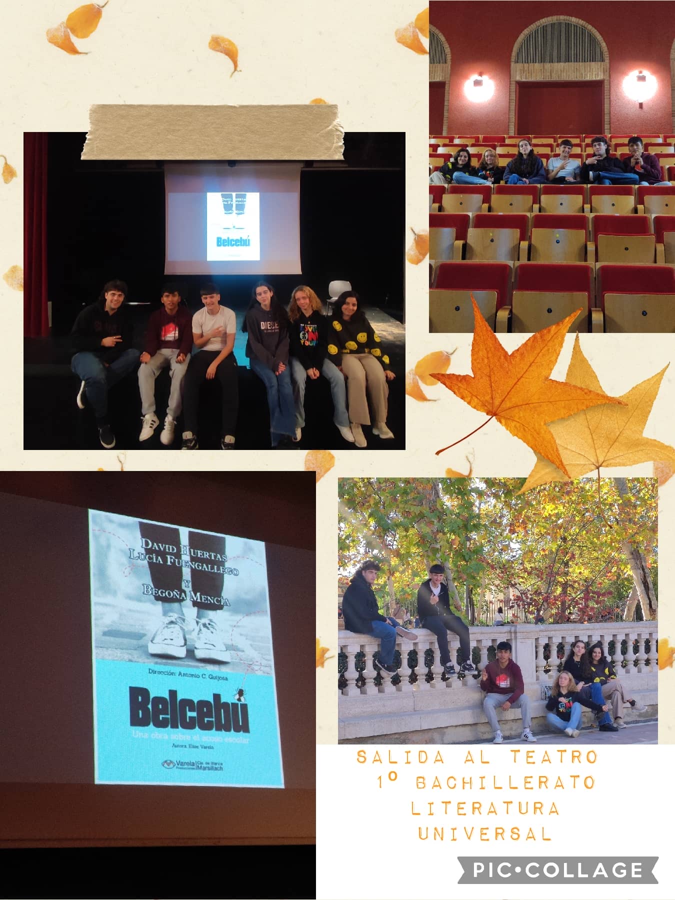 Aprovechando que el Centro Cultural Casa de Vacas del Retiro nos pilla a un tiro de piedra del colegio y que allí se podía disfrutar de una obra de teatro gratuita, algunos de los alumnos que cursan la asignatura Literatura universal en 1º de Bachillerato han asistido al teatro para ver "Belcebú". La obra estaba inspirada, aunque de forma muy superficial, en El señor de las moscas, una de las obras que aparece en nuestro listado de lecturas autónomas. La representación nos ha hecho reflexionar sobre el abuso de poder y las motivaciones que nos llevan a mantener actitudes ofensivas hacia los demás.