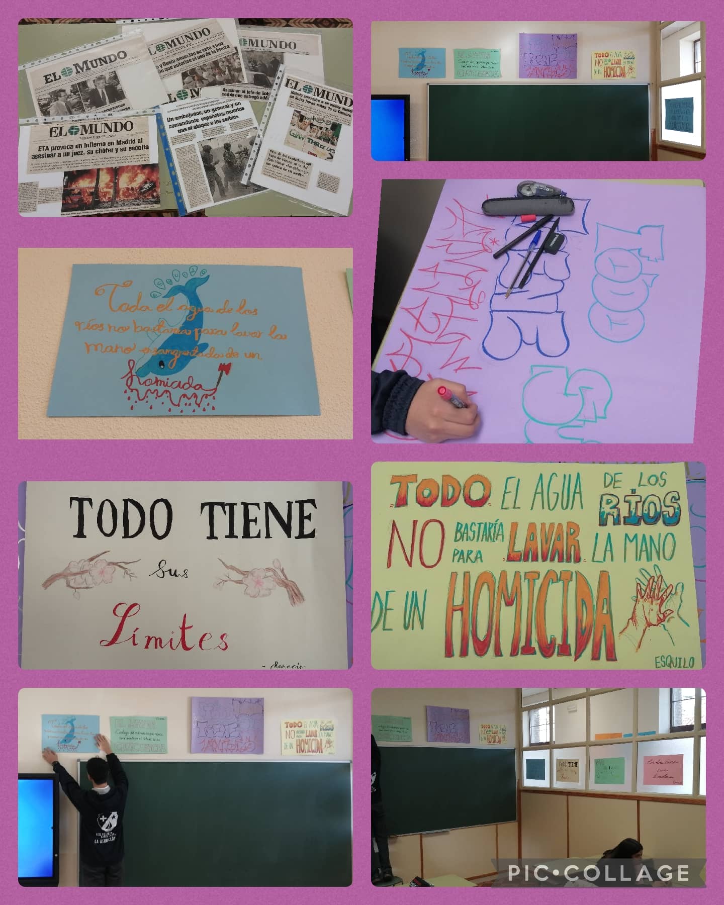 Para cerrar el trimestre, en la materia de Cultura Clásica de 4º ESO hemos trabajado con frases famosas de autores grecolatinos. Las hemos elegido a partir de frases publicadas desde hace muchos años en una publicación periódica: estas aparecían en pequeño formato para reforzar los titulares del día. Una vez elegidas, las hemos transformado con nuestra creatividad en estupendos carteles para dar vida y pensamiento (no artificial) a nuestra aula.