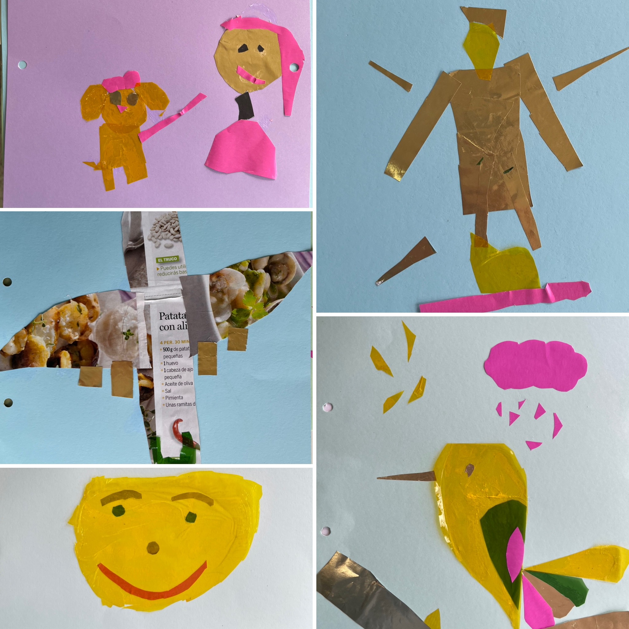 In Science we are studying different materials such as plastic, wood, fabric, paper... And we have created some pieces of art with different types of paper and our great creativity.