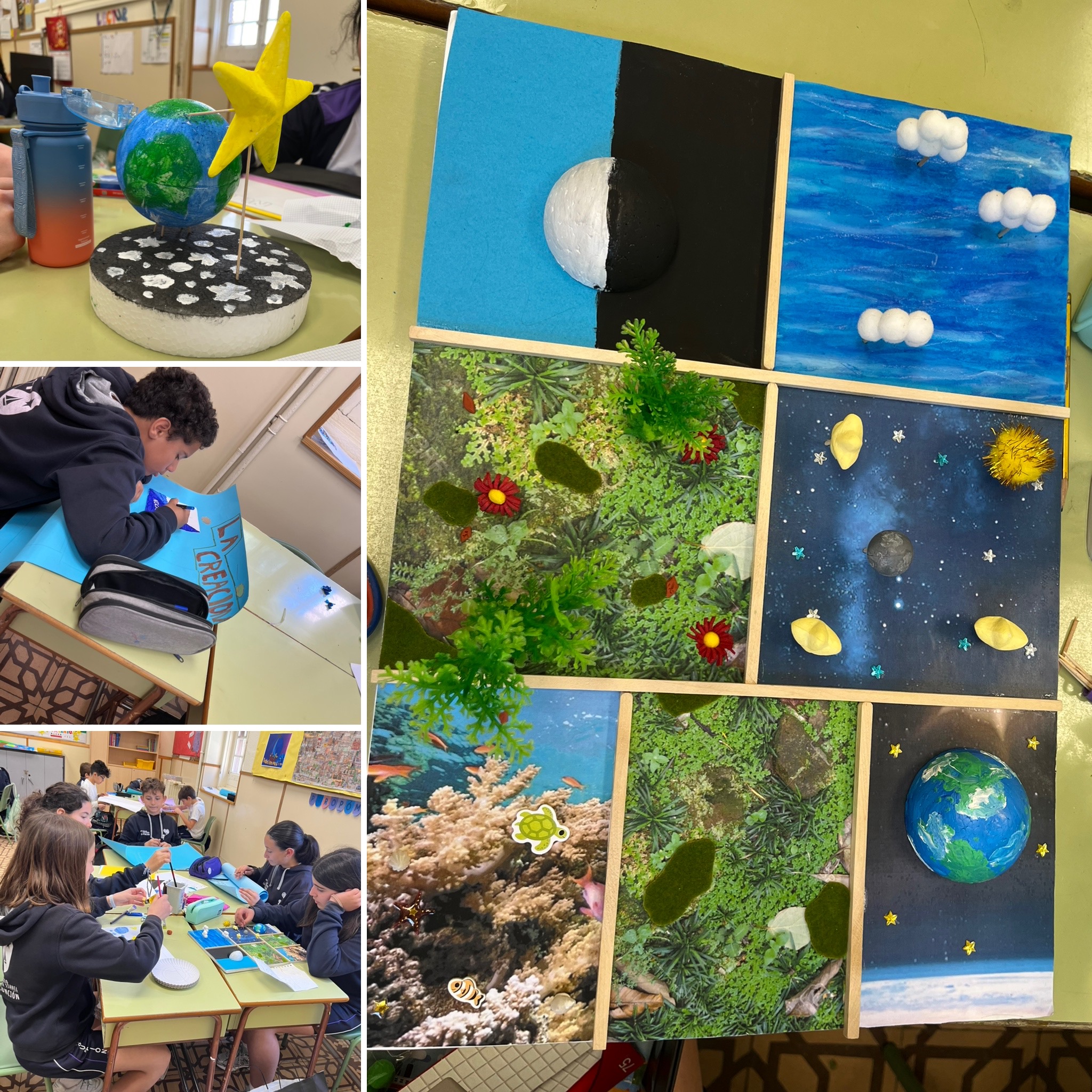 Estos relatos del Génesis son los que nos cuentan cómo fue la Creación del mundo. En 6º, estos días, lo leen, lo interpretan, lo imaginan y cada uno, según su visión y sus dones, lo plasma de forma gráfica.