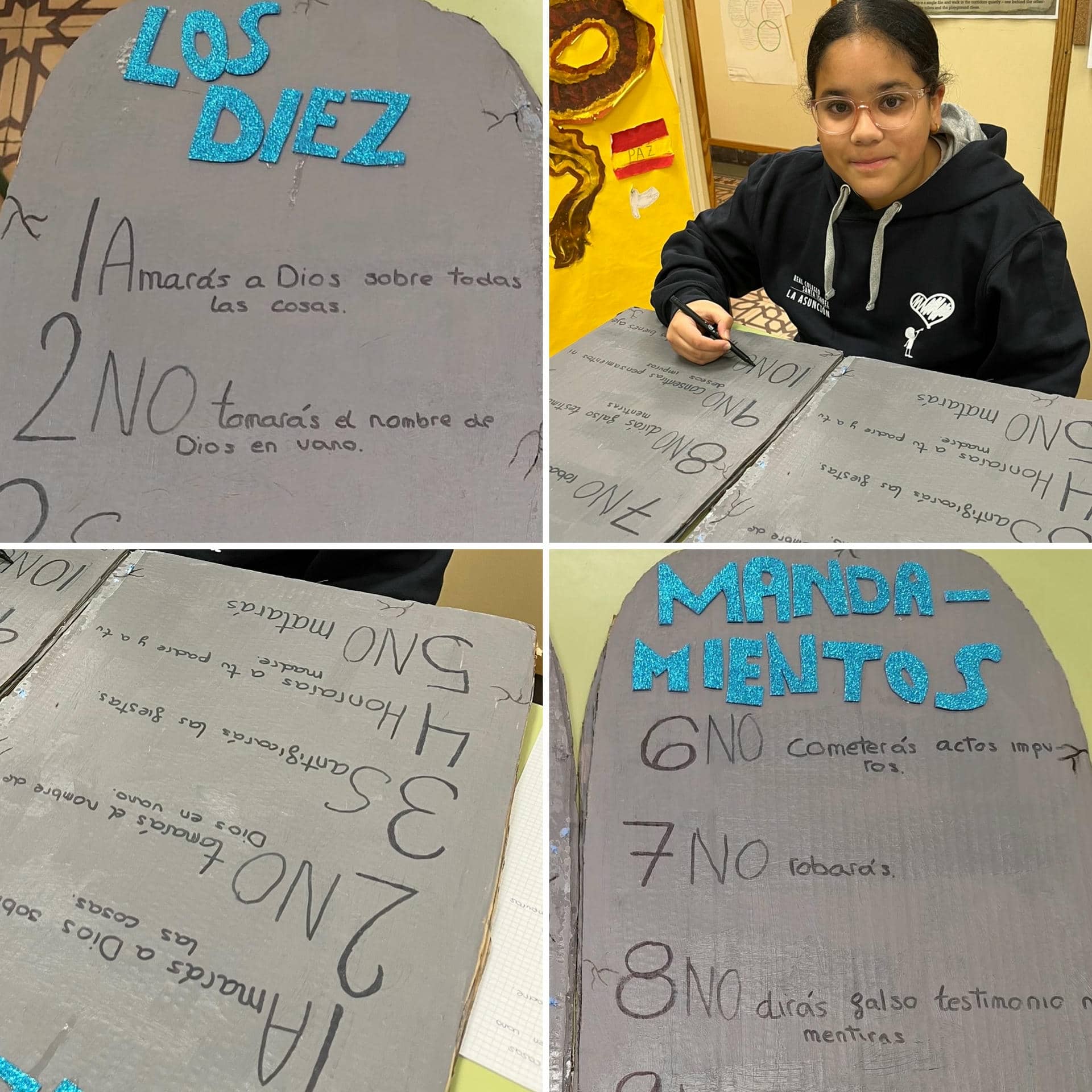 Con este trabajo, como con los mandamientos, enfocamos nuestra relación con Dios y con el prójimo. Aprendemos tanto sobre el tema estudiado como sobre la creatividad y el arte de cada uno de los estudiantes.