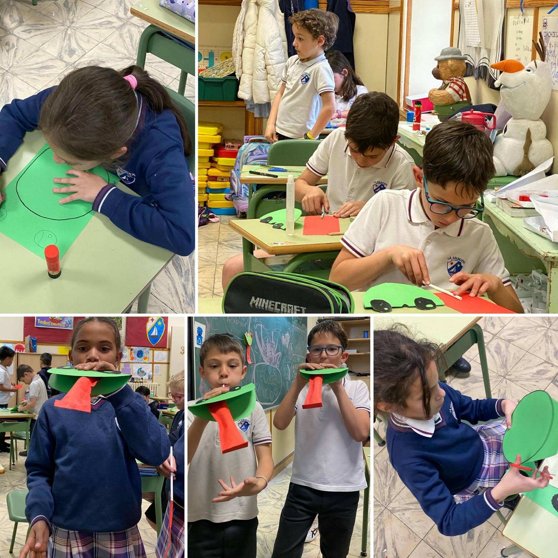 Han necesitado poco: una clase de Educación Plástica, una cartulina verde, ojos móviles, papel reciclado y su imaginación.