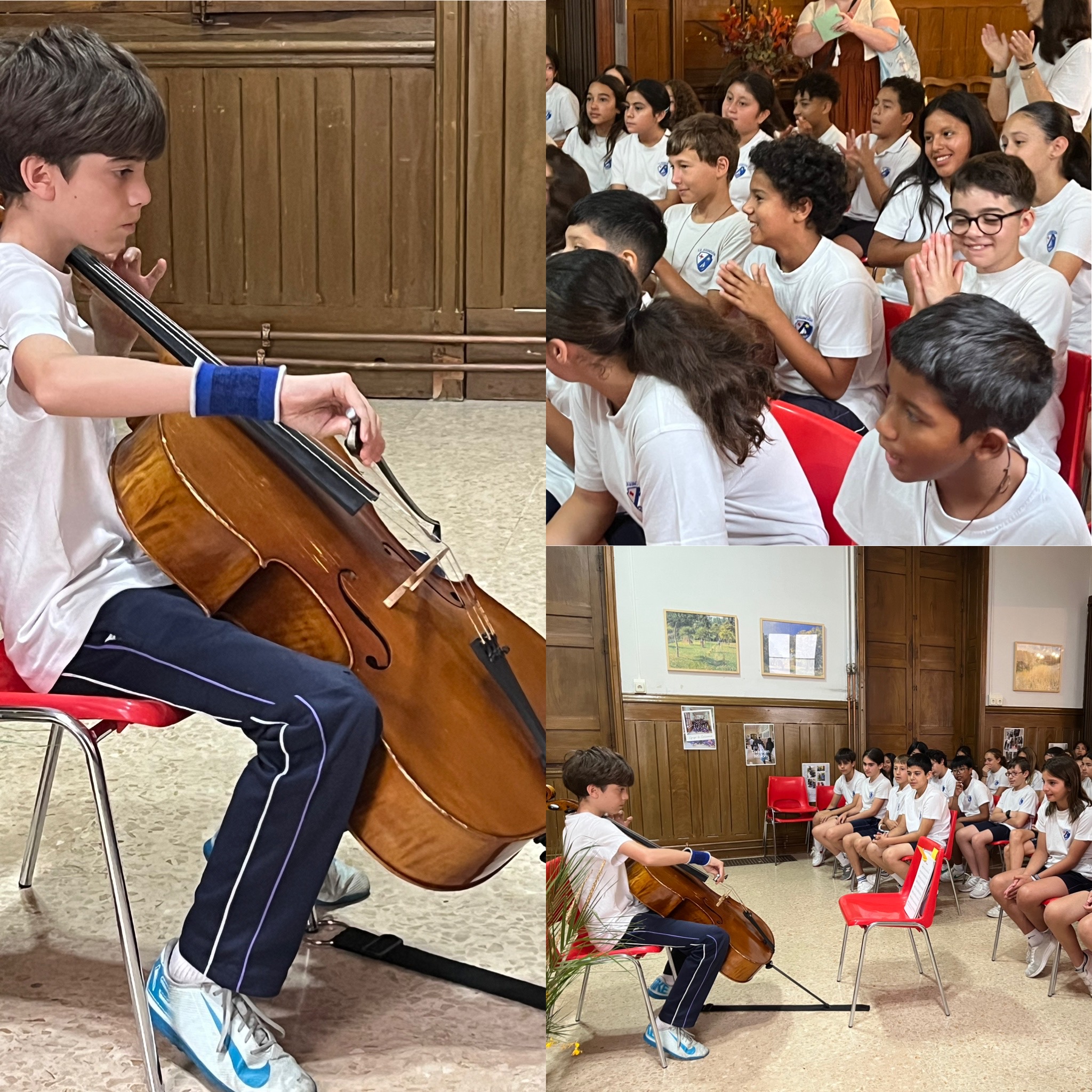 Hoy 6º comenzamos la jornada con Thiago, dándonos un concierto de violonchelo. Nos deleita con canciones muy reconocibles como Stars Wars hasta con míticas como Long Long Ago.