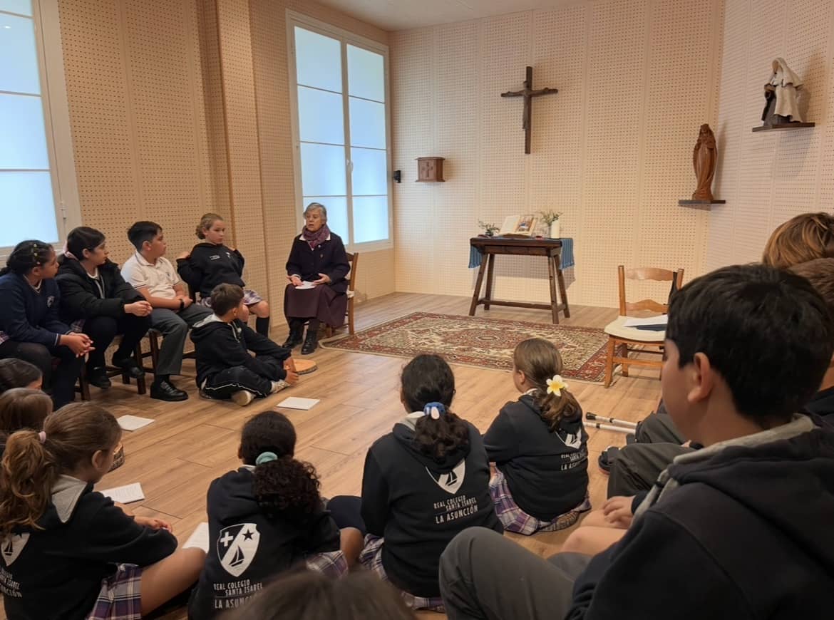 Una vez al mes, un grupo de alumnos, junto con profesores y personal del centro, movidos por una inquietud personal, nos reunimos en el oratorio de nuestro colegio. Este momento no es una clase más; es una invitación abierta a todos los que quieran hacer una pausa. Dejan atrás los libros y los juegos para sentarse frente a Jesús, en un ambiente sereno y acogedor. No es un simple rato de silencio, sino uno encuentro genuino. Aquí, el adulto guía a los chicos a abrir la Biblia y a escuchar la Palabra De Dios, que invita a la vida. Es un momento para dejar que esas palabras inunden el corazón con el amor y acompañamiento del Señor, que está con nosotros siempre.