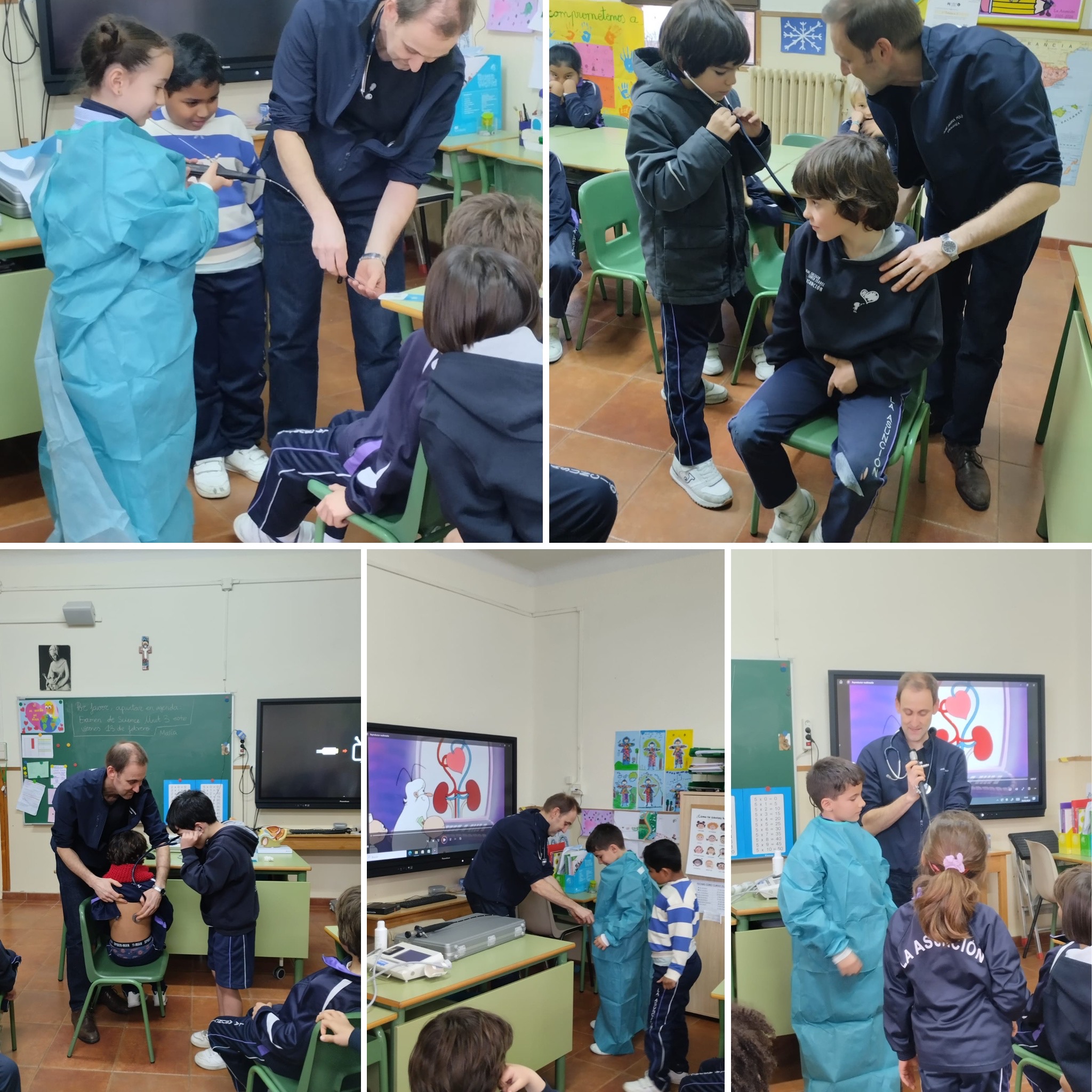 ¿Por qué? Porque recibimos una clase MAGISTRAL del papá de Emma, de 2ºA, en la que nos mostró de forma muy práctica cómo funcionan algunos de esos aparatos que utilizan los doctores.