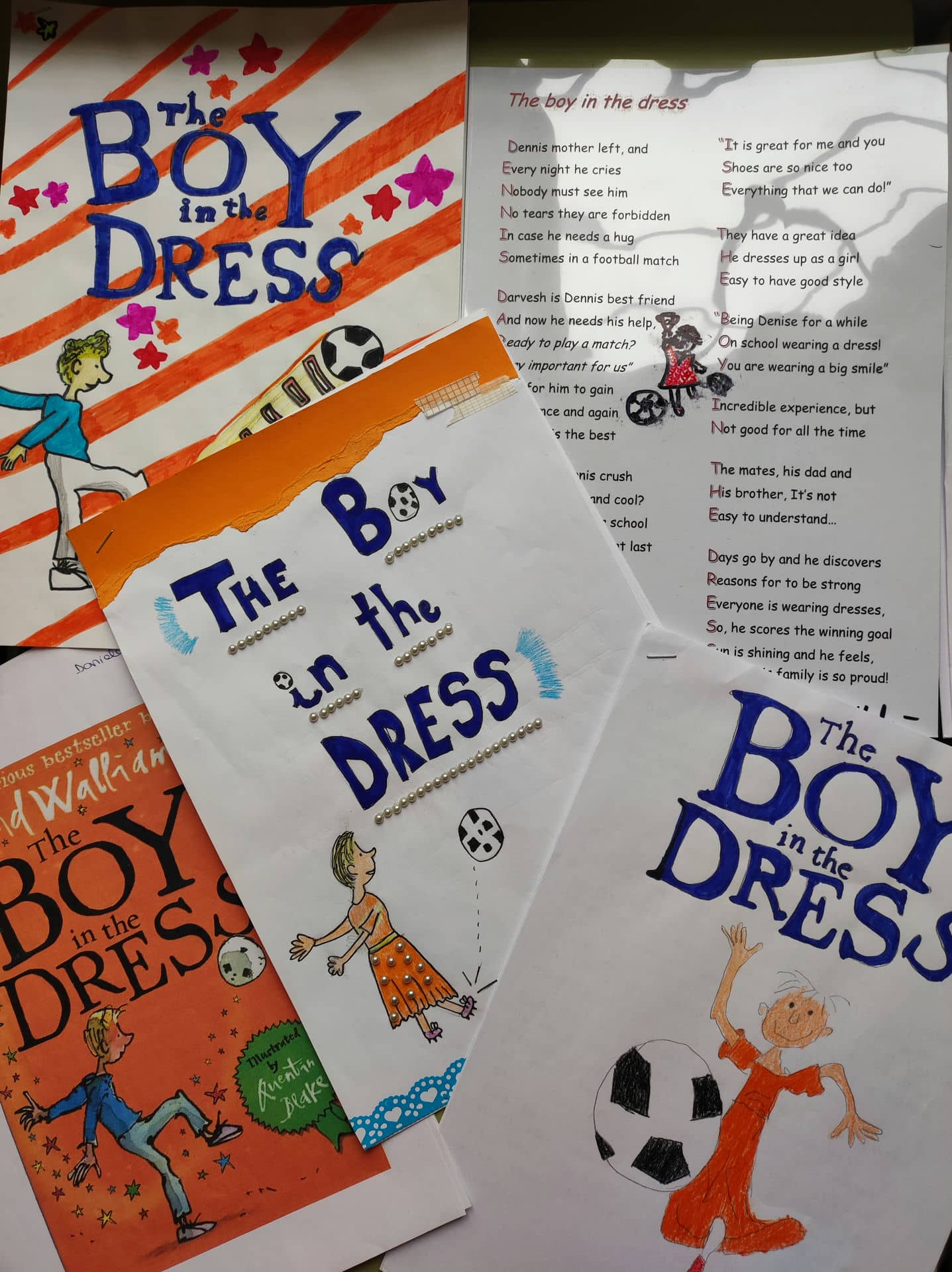 Los alumnos de la asignatura de English Advanced de 1º ESO han leído The boy in dress durante este segundo trimestre. En los proyectos que han realizado sobre el libro se ve reflejado que han disfrutado de su lectura. Os dejamos una muestra de algunos de los trabajos realizados, llenos de originalidad e imaginación.