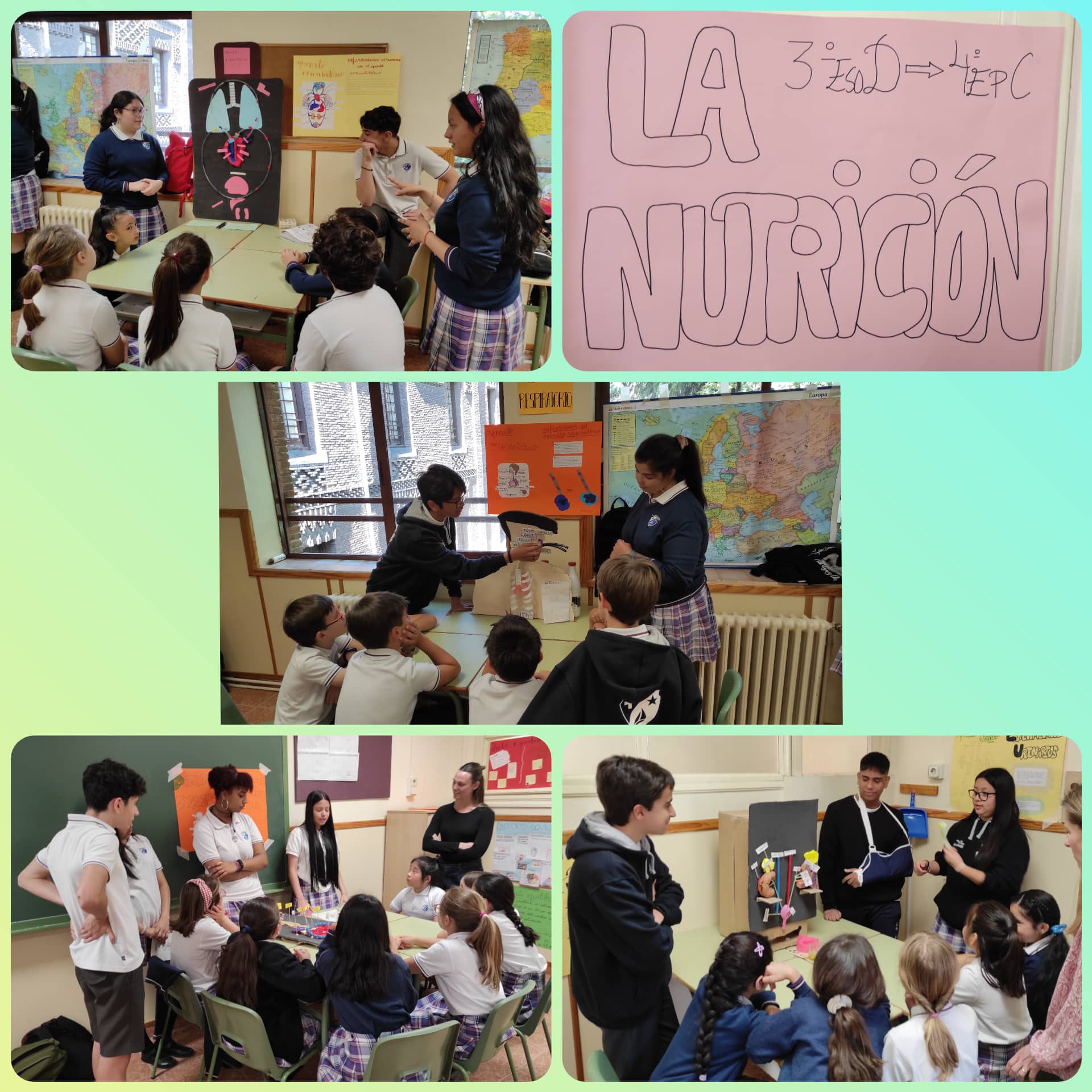 El pasado 12 de abril el curso de 4º de Educación Primaria se pasó por la clase de 3º ESO D para aprender un poco más sobre nutrición.