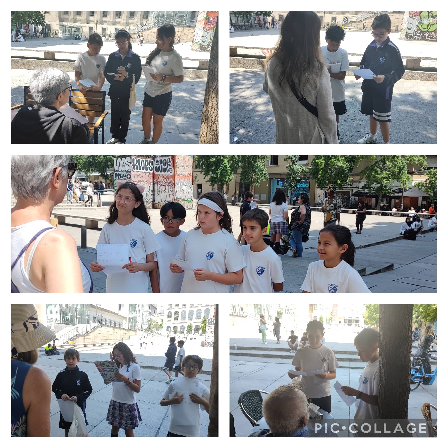 Equipados con sus libretas, bolígrafos y detalles, elaborados por ellos mismos para premiar a los encuestados por su colaboración, nuestros valientes alumnos se dirigieron a las emblemáticas Plazas del Reina Sofía y Santa Ana.