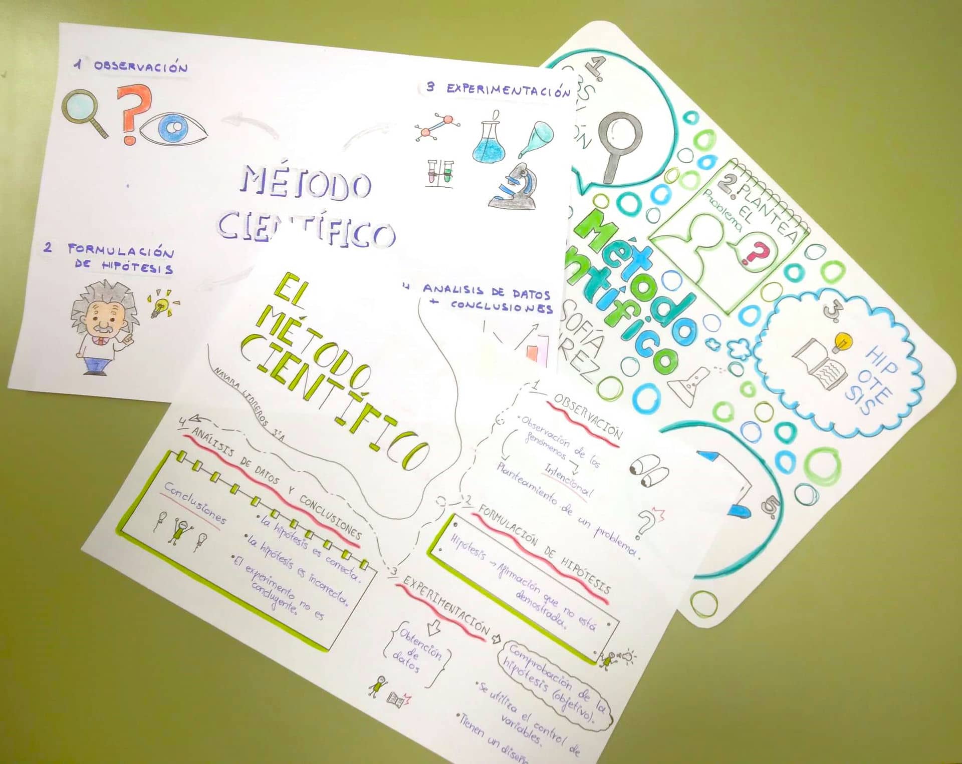 Los alumnos de 3º ESO de Fïsica y Química han estado trabajando en este inicio del curso distintas cuestiones relacionadas con las metodología de estas ciencias. Una de ellas las fases del método de las ciencias experimentales. Para recapitular este trabajo los alumnos han elaborado un “visual thinking”