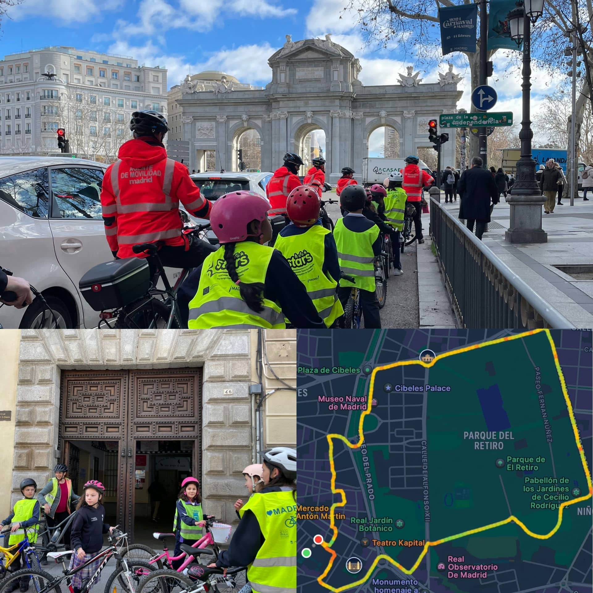 Esta semana va SOBRE RUEDAS. Ayer, alumnos y alumnas de 5º de E.Primaria recibieron su HABILITACIÓN CICLISTA, después de una formación teórica y una práctica muy completa. Para poner el punto final y conseguir su -carnet- para poder circular por las vías a dos ruedas, salimos por Madrid centro, recorriendo parte del Paseo del Prado, Retiro, Puerta de Alcalá... El sol, como los agentes de movilidad con su gran dedicación y atención, nos acompañaron durante toda la jornada. Fue una aventura maravillosa que todos recordaremos siempre. ¡¡Gracias a todos los que habéis hecho esta actividad posible!!