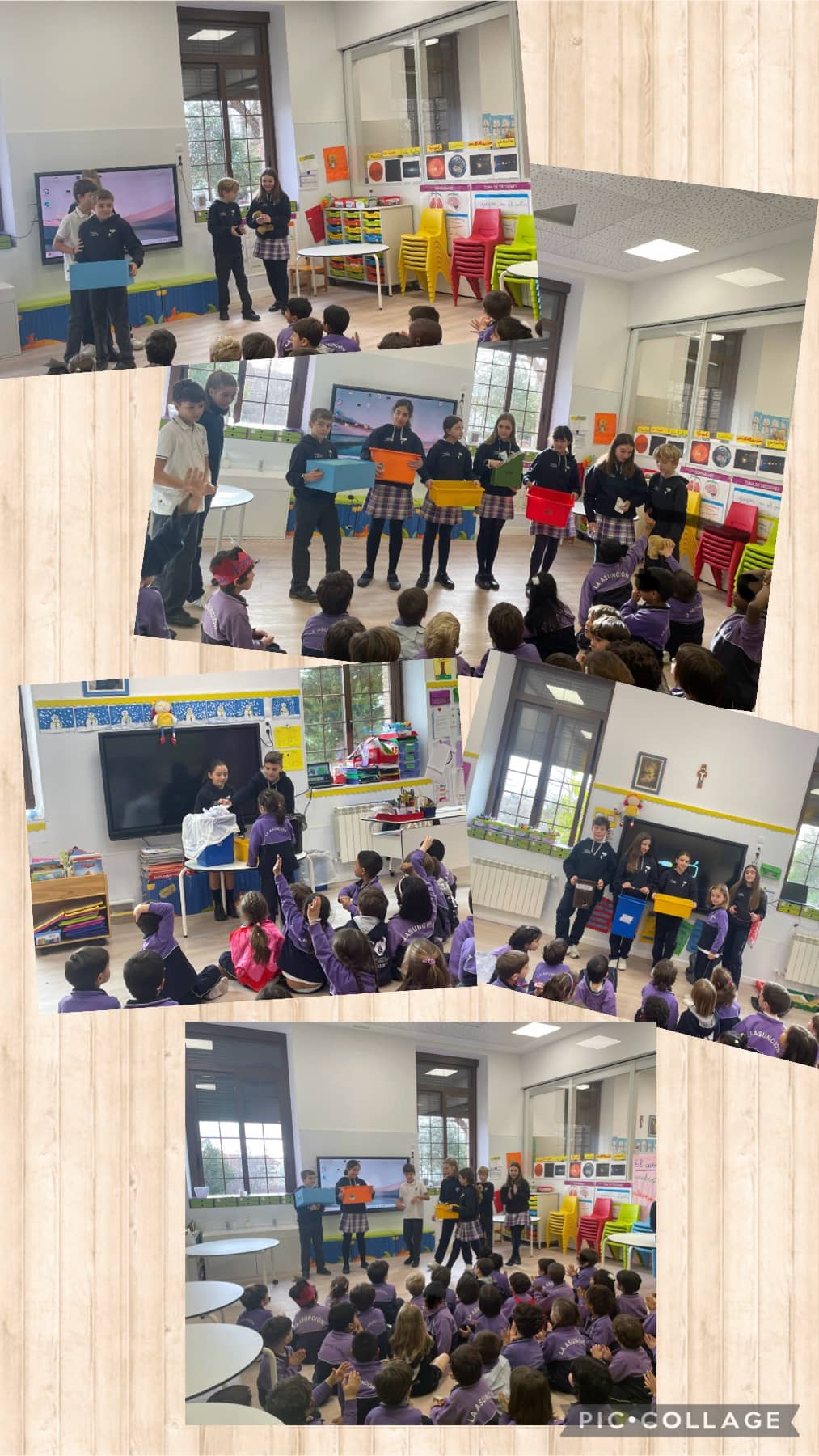 Los alumnos del Comité Ambiental del curso de 6º de Primaria han preparado con gran esmero unas obras de teatro sobre el buen reciclaje, con dinámicas, juegos y premios para los alumnos de 4 y 5 años.