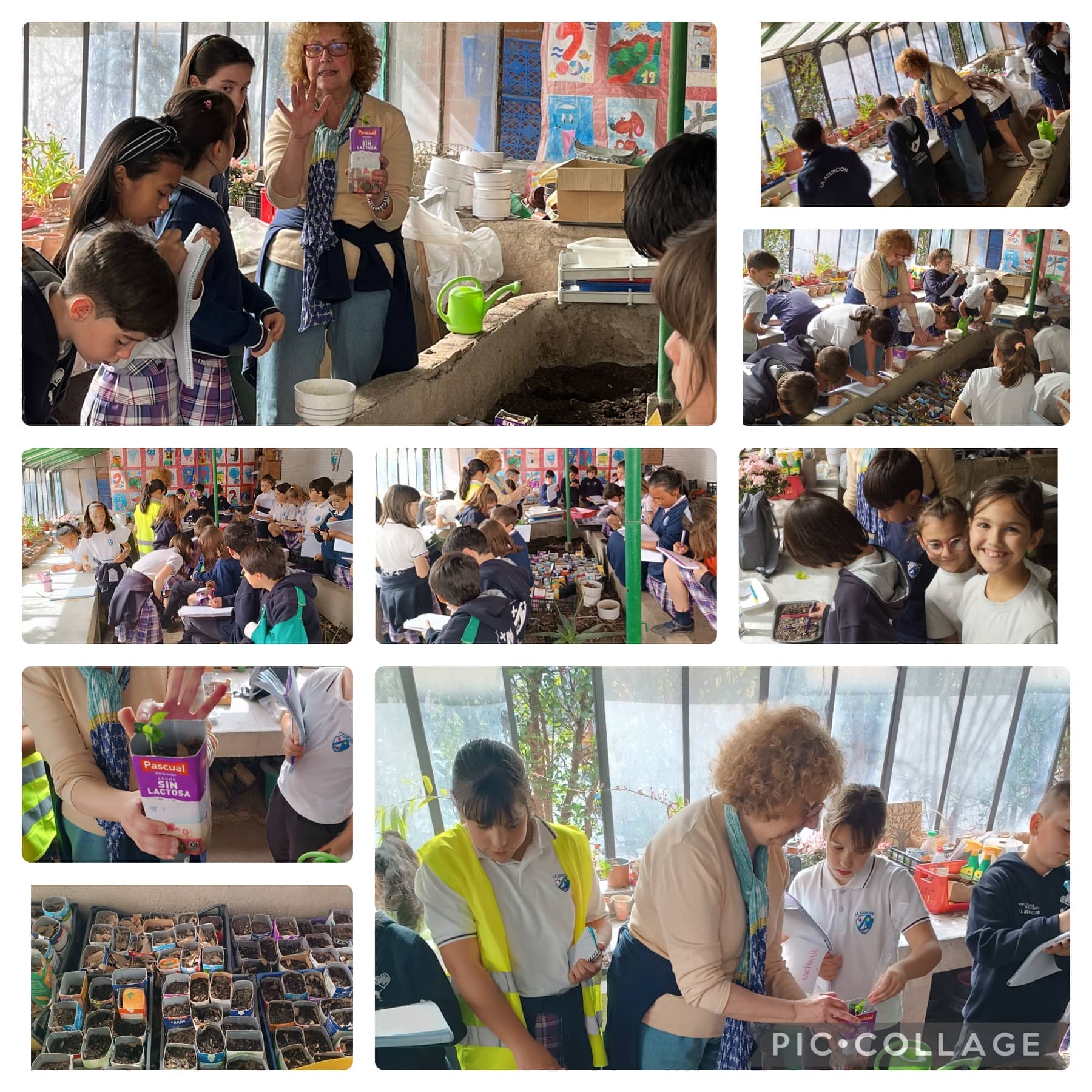 Así, los alumnos de 4º de E.Primaria hemos descubierto que SÍ ha nacido "alguna plantita"... Lo más emocionante ha sido observar y medir el -plantón de fresno-, que ha sido el primero en asomar por encima de la tierra.