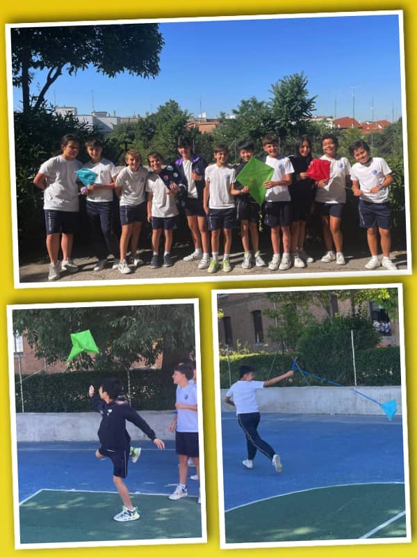 Después de volar sus cometas o tratar de hacerlo, evalúan lo que han hecho bien y lo que deberían mejorar. Y sobretodo, han corrido, disfrutado y aprendido en una mañana soleada en nuestro gran patio del colegio.