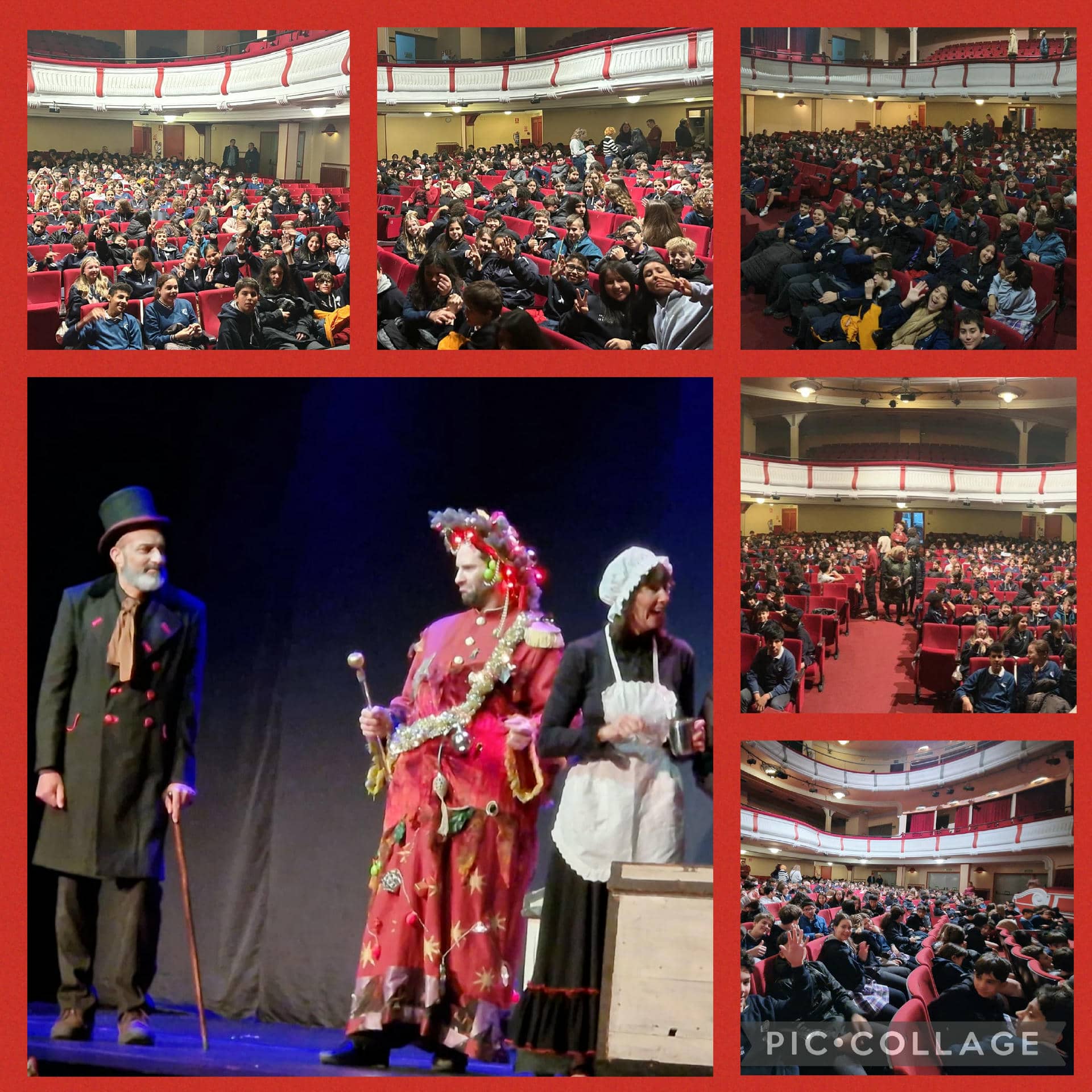 El día antes de que nos dieran las vacaciones de Navidad, dejamos las aulas de Secundaria y Bachillerato vacías para ir al teatro. Fuimos caminando hasta la Carrera de San Jerónimo, donde se ubica el Teatro Reina Victoria. Llenamos el patio de butacas de la preciosa sala y disfrutamos de una adaptación de la obra Cuento de Navidad, de Charles Dickens. La actividad estaba organizada por el Departamento de Idiomas y la vimos en inglés (A Christmas Carol). Fue una delicia disfrutar de la interpretación, en tono cómico en ocasiones, que nos hacía mantenernos muy atentos, así como las actuaciones musicales, muy bien interpretadas, de la compañía Face to Face.