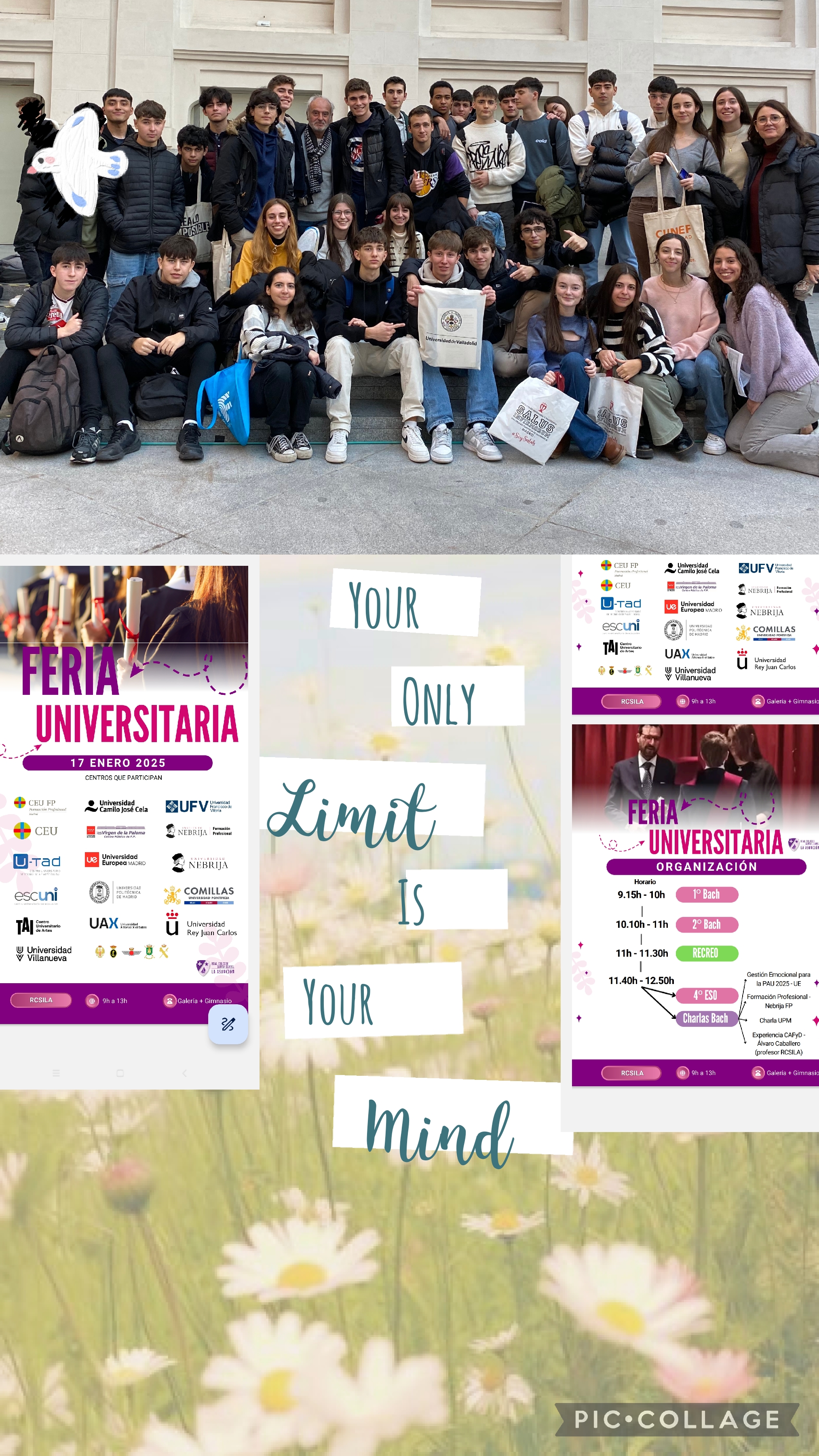 Sólo 10 días más tarde, los de 2º de Bachillerato han dado un paseo desde el colegio hasta la calle Montalbán, donde está el salón de Orientación Universitaria UNITOUR. Allí pudieron obtener también información sobre las principales universidades nacionales e internacionales, con un equipo de profesionales disponibles para resolver sus dudas.