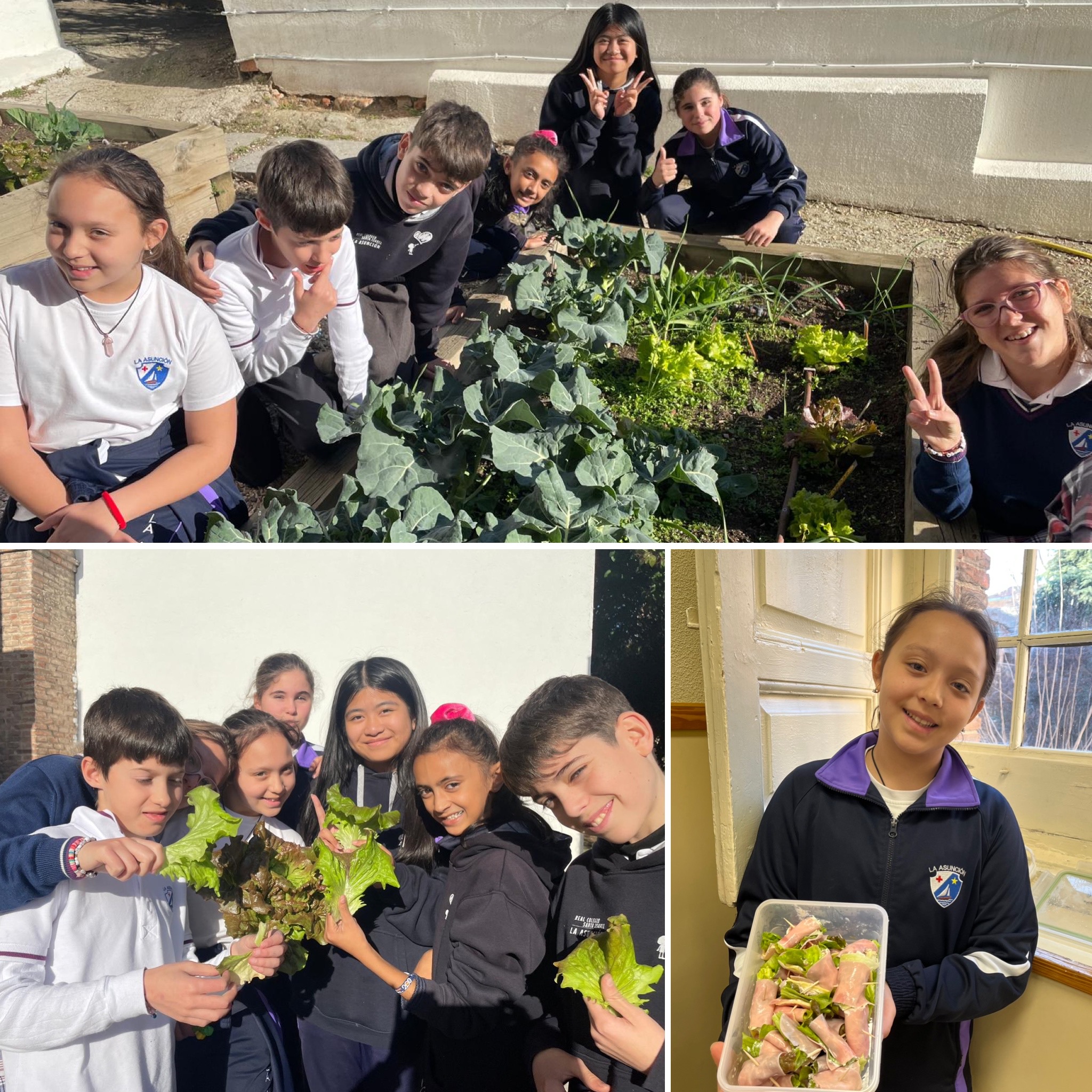 Su "recompensa" además de su propio aprendizaje y satisfacción, fue bajar al huerto a recoger el primer cogollo de lechuga que asomaba en esta temporada otoño-invierno.