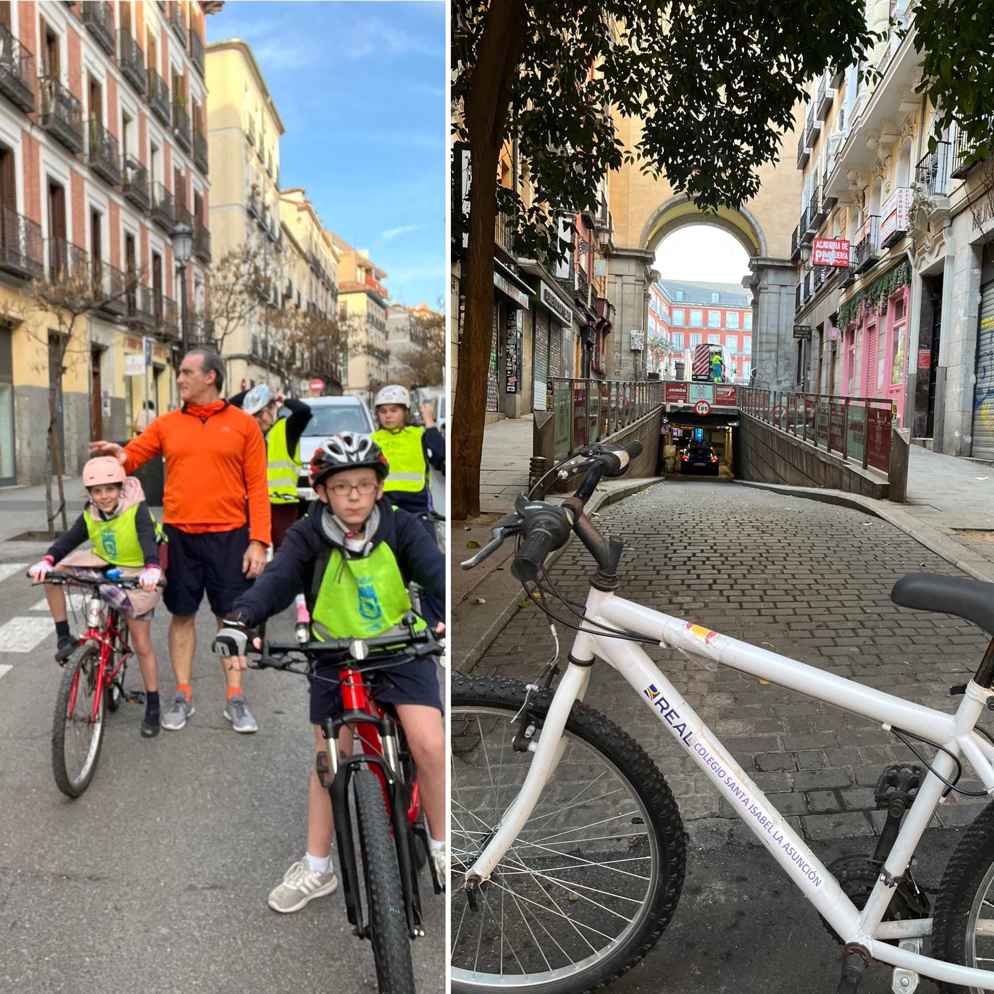 La semana pasada nos vimos forzados a anular el bicibús debido a las lluvias pero hoy, ha brillado el sol y los ojos de nuestros niños según iban pedaleando hasta el colegio.