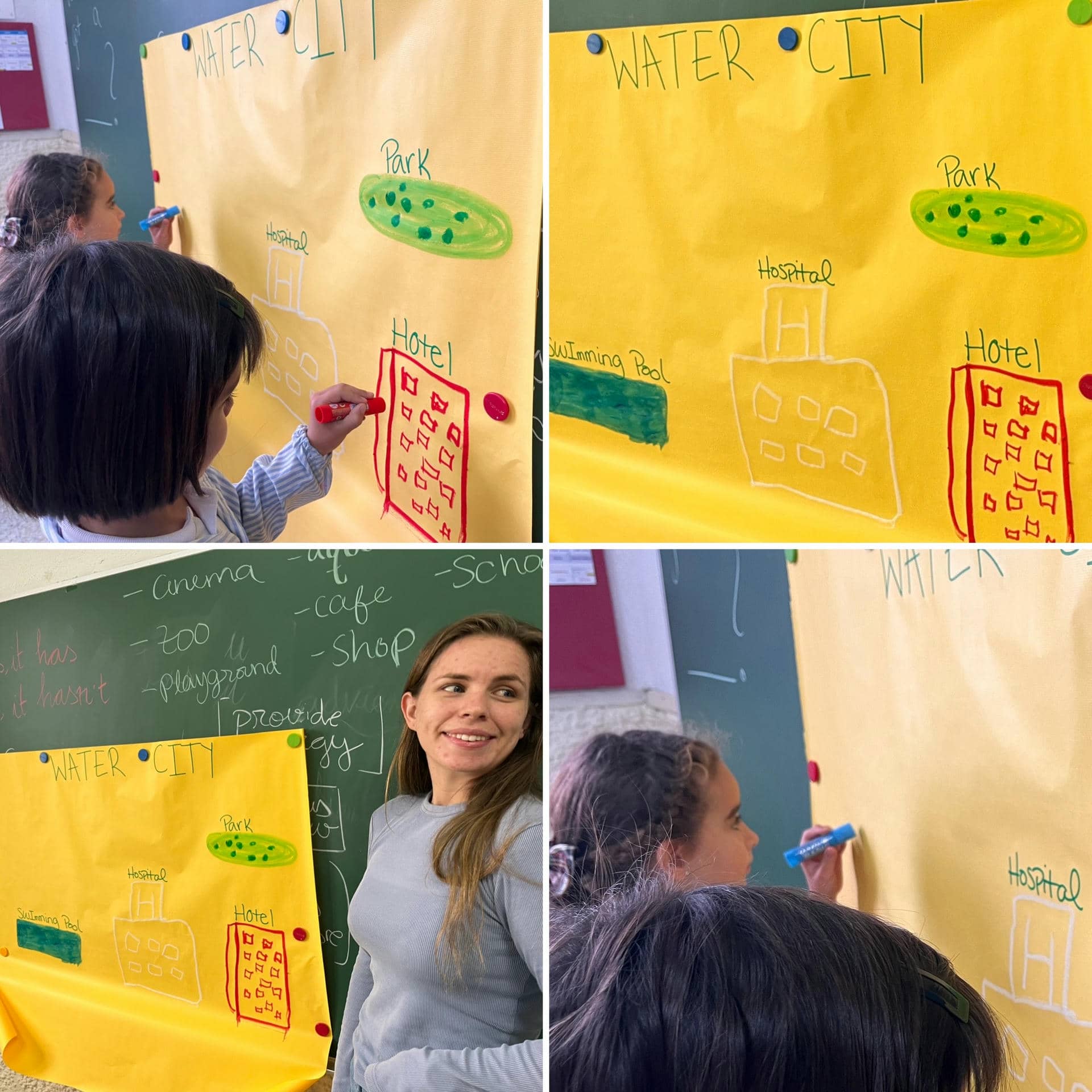 Además, crean e inventan una city, a la que llaman WATER CITY en una de las clases, y entre todos deciden qué sitios tendrá.