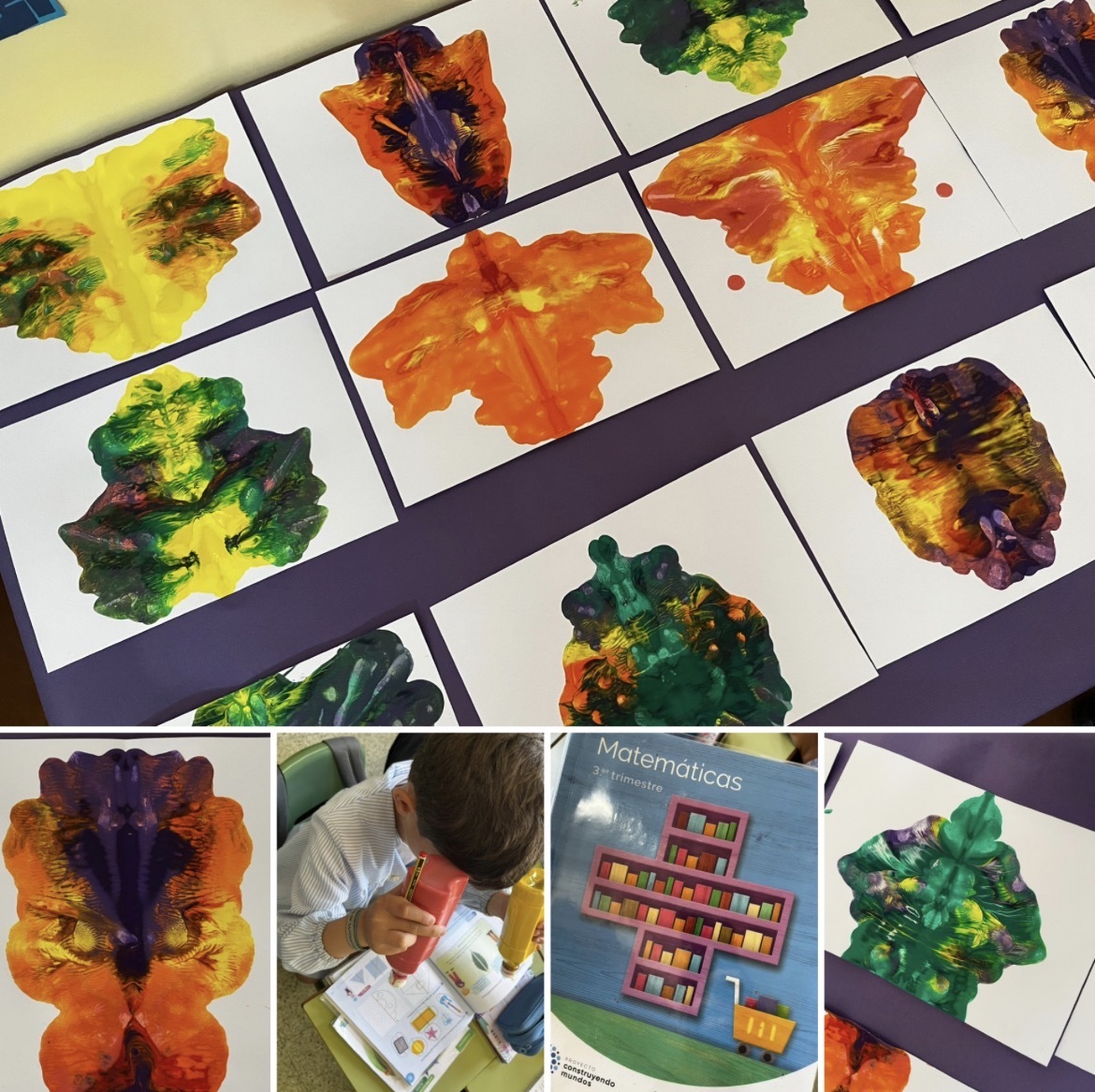 Cada estudiante ha elegido sus colores, cada uno ha plasmado en el papel lo que volaba por su cabeza y después de llevar a cabo la técnica adecuada… han dado lugar a su figura perfectamente simétrica; única cada una de ellas.